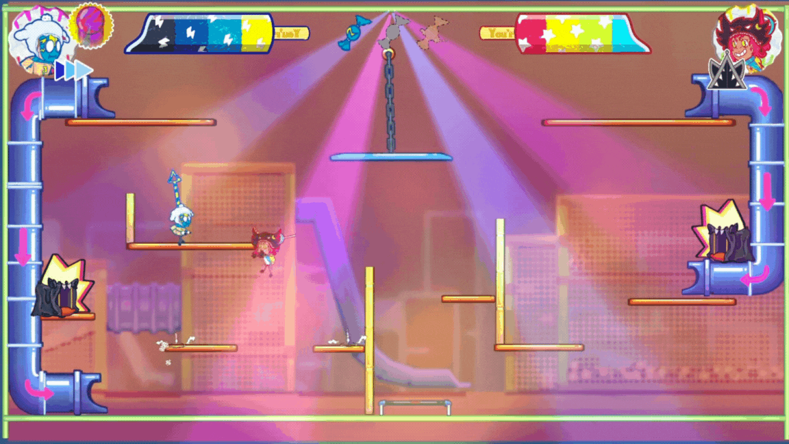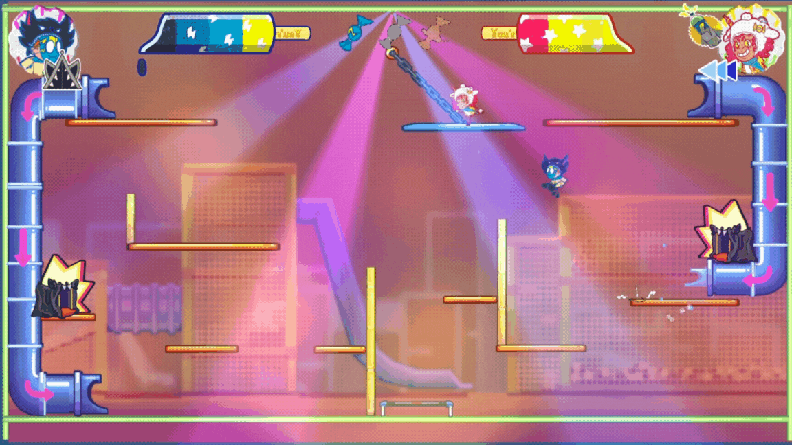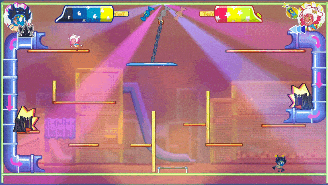 Cartoony & dynamic 2 player versus platformer for two controller